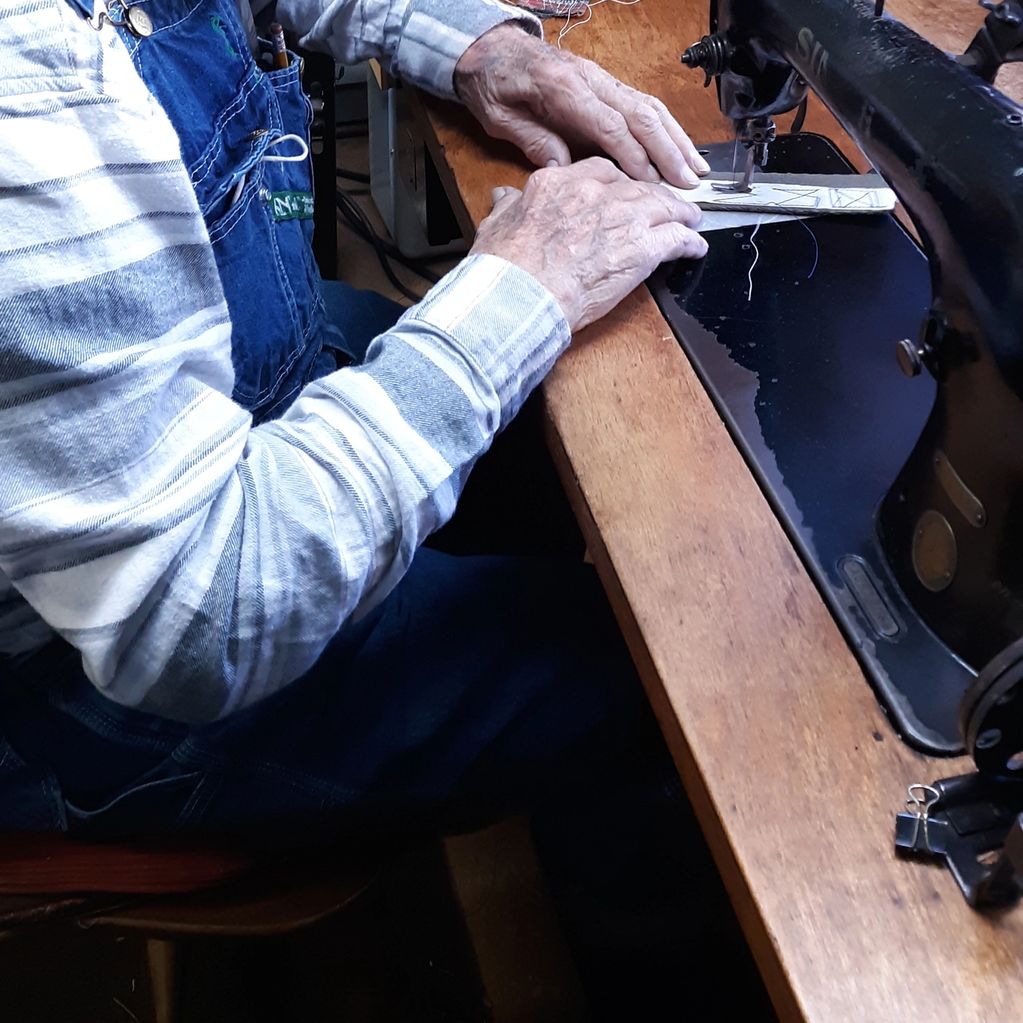 Her father even at 95 that got her interested in weaving. He passed away April 3, 2025 was helping improving her skills with sewing on his heavy duty Singer Sewing Machines.